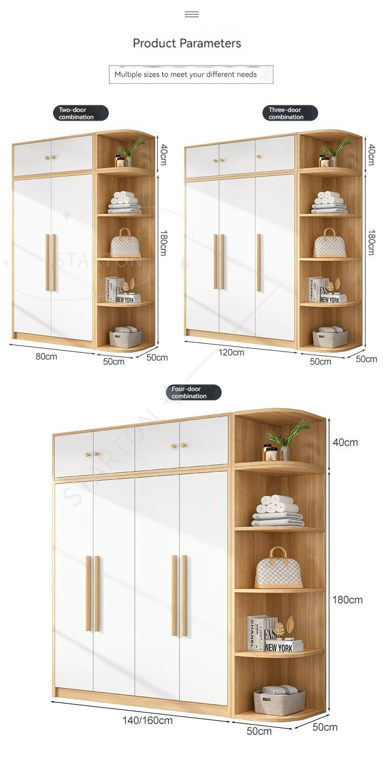 Armario de madera de estilo nórdico con puertas opuestas — Mueble de almacenamiento para dormitorio que ahorra espacio